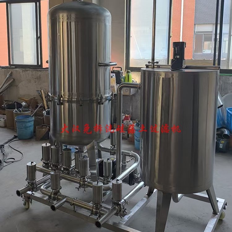 硅藻土过滤机适用于白酒,果酒,葡萄酒,保健酒,饮料,糖浆,酱油,醋,以及医药,生物,化工等液态制品的澄清过滤,过滤周期长,效率高,浊度稳定,密封性好,结构紧凑,操作方便,易于维护保养.