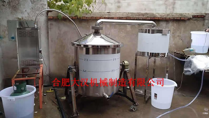 农村小型家庭酿酒设备:每次投料200斤粮食,价格12600元,,固态液态两用,固态出料更方便,自动补水不用担心锅底缺水问题,自身带节能蒸汽机及串蒸网板等。如果需要双蒸锅盖另加3000元。